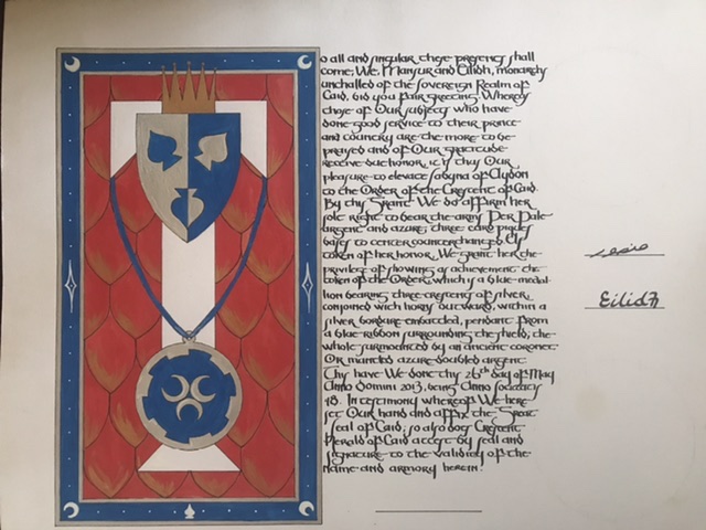 Order of the Crescent scroll for Sabyna of Aydon. Gouache and ink on paper. 2013